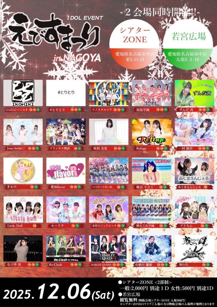 - 2025年12月6日(土):アイドルイベント『えびすまつり』 in NAGOYA開催!